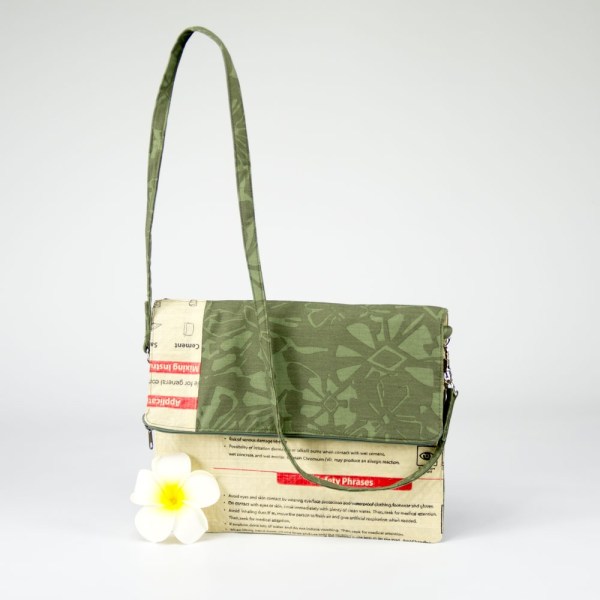 Material: Zementsack (langlebig, spritzwasserfest & sehr leicht) mit Baumwollelementen (nicht wasserdicht); Innenfutter: Baumwolle