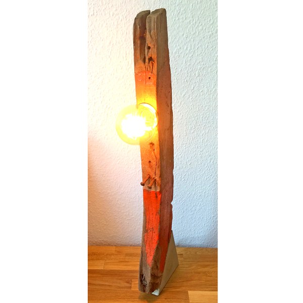 Diese besondere und einzigartige Stehlampe besteht aus dem Bug eines alten thailändischen Longtailbootes. Das ist das Stück Holz des Bootes, welches als erstes neue Wellen durchbricht und hat somit auch einen symbolträchtigen Charakter. Das Massive Holzstück mit einer besonderen roten Patina ziert eine Vintage Edison Glühbirne mit 40W. Der Bug wird von einem dreieckigem Betonsockel getragen, der einen tollem Kontrast zum Holz erzeugt.